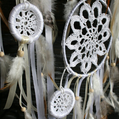Apļa simbolika ir sena kā pasaule. Baltā spalva, lai bērnam stipra veselība, zilais zvaniņš, lai aizved tevi uz tālām zemēm, baltā krellīte, lai sargā mājas mieru. Noteikti sapņu ķērājā vajag likt zvārgulīšus, jo smalkās skaņu vibrācijas, attīra auru un telpu.